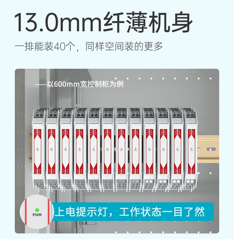 適用場合:溫度隔離器可以將熱電阻或熱電偶等信號,轉換成標準電流或電壓信號給其它儀 表。可實現輸入、輸出、電源之間的三端隔離,從而提高工業生產過程自動控制系統的抗干擾能力,保證系統的穩定性和可靠性。