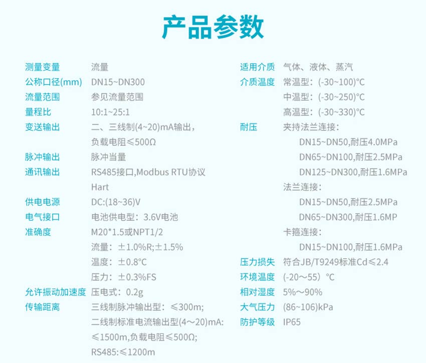 適用場(chǎng)合:渦街流量計(jì)是速度式流量計(jì)的一種,基于卡門(mén)(Karman)旋渦原理研究設(shè)計(jì)的,主要用于工業(yè)管道中介質(zhì)流體的流量測(cè)量,如:氣體、蒸汽或液體等多種介質(zhì)的流量控制和計(jì)量。渦街流量計(jì)廣泛應(yīng)用于供熱、供氣、化工、環(huán)保、冶金、紡織、鋼鐵、醫(yī)藥、造紙、排水等廠礦企業(yè)對(duì)過(guò)熱蒸汽、飽和蒸汽、壓縮空氣和一般氣體(氧氣、氮?dú)狻錃狻⑻烊粴狻⒚簹獾龋⑺鸵后w(如:水、汽油、酒精、苯類等)的計(jì)量和控制。